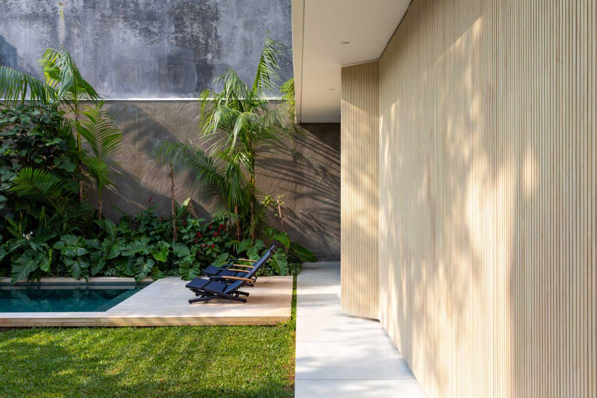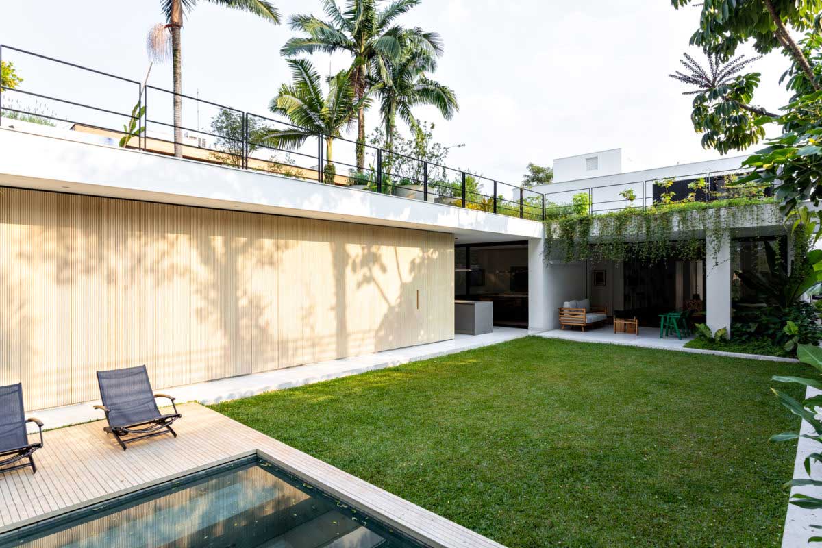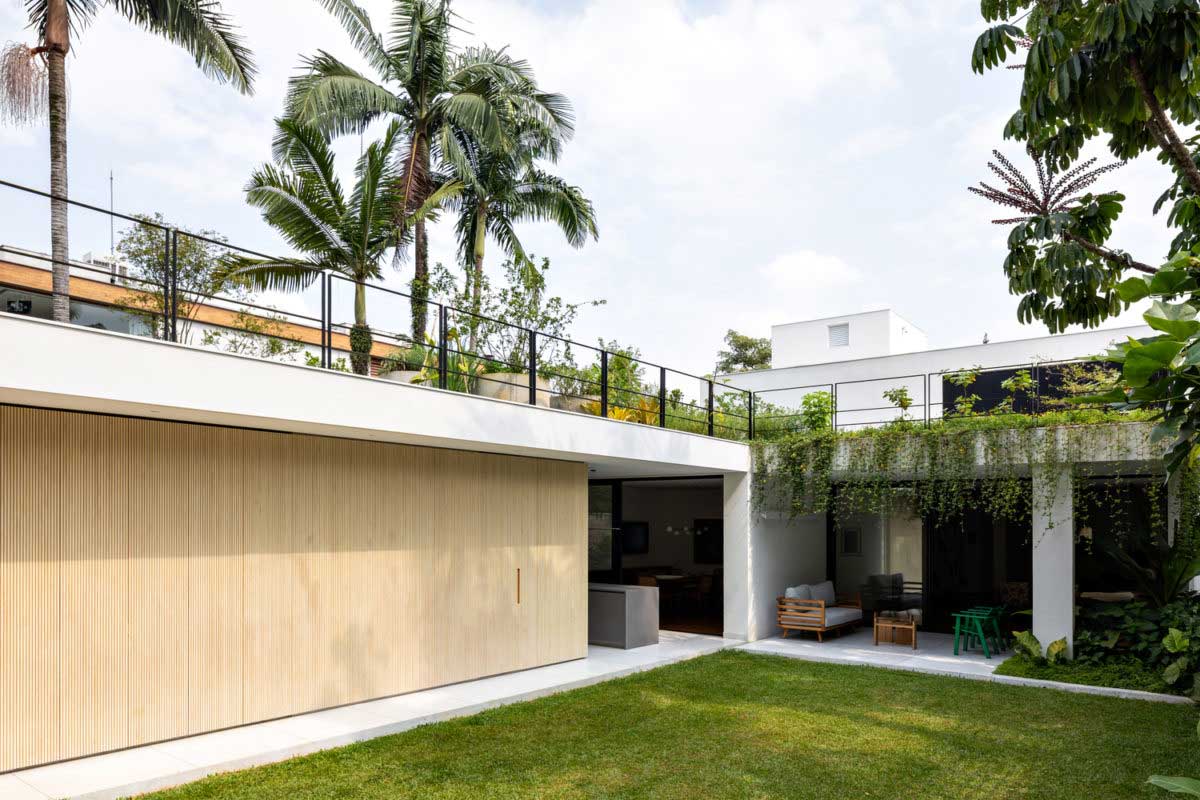 С давних времен люди пытались оградить свое жилье от посторонних глаз. Со временем развитие архитектуры и новых технологий строительства позволили превратить обычный двор в настоящий шедевр обустройства ландшафта. Спроектированный дом с внутренним двором с необычной планировкой и расположением становится укромным местом для семейного отдыха. Если Вы не знаете, как превратить засоренную ненужным хламом территорию участка, тогда возьмите в пример роскошный проект от архитекторов компании CR2 Arquitetura.