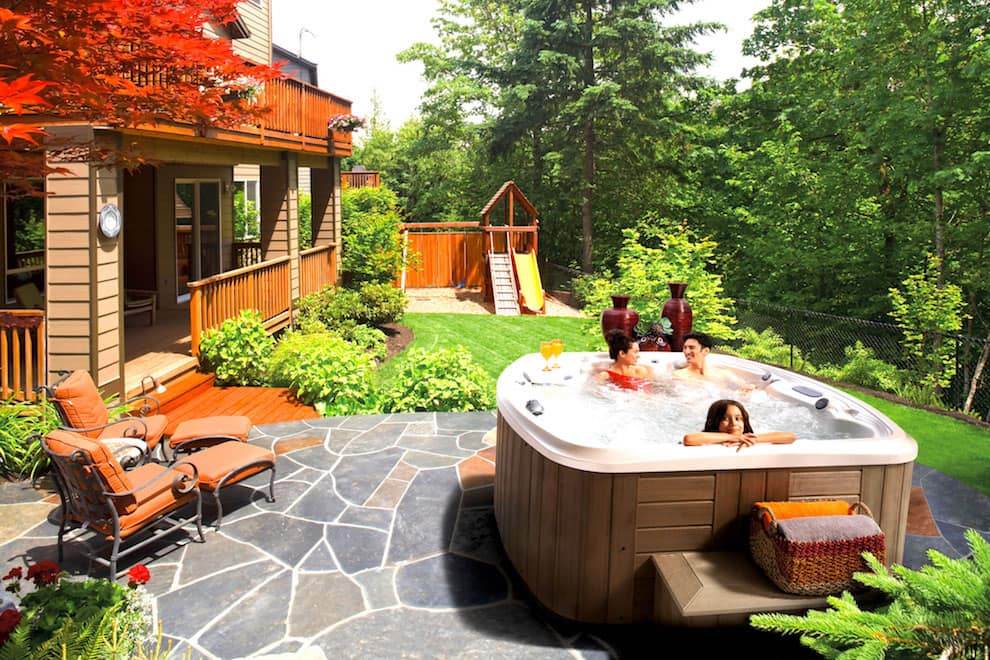 При желании на участке, можно установить стационарный бассейн-джакузи в котором будет весело проводить время вся семья