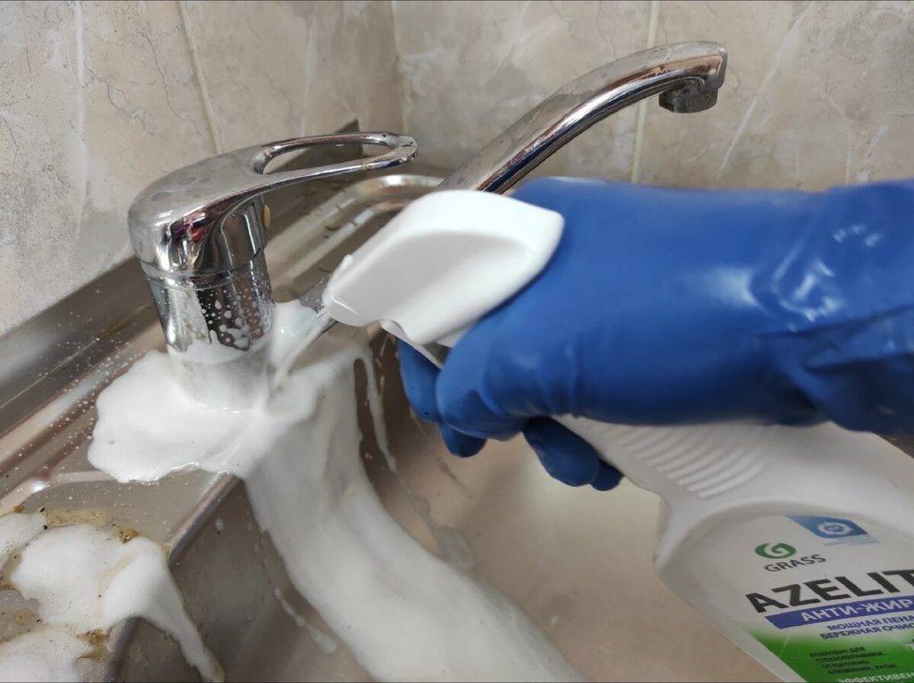 - На незначительных загрязнениях выдерживают чистящий состав до смывания пять минут. Если отложения мыла, солей въелись, то лучше продлить время до 20 минут.