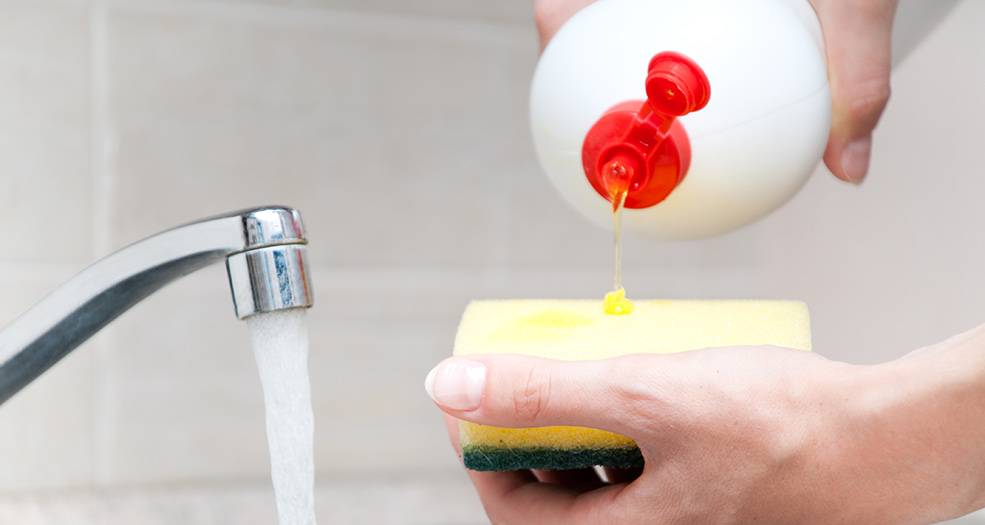 Для того чтобы убрать небольшие загрязнения, посуду предварительно замачивают. После чего протирают губкой с нанесенным на нее средством. Затем ополаскивают водой.
