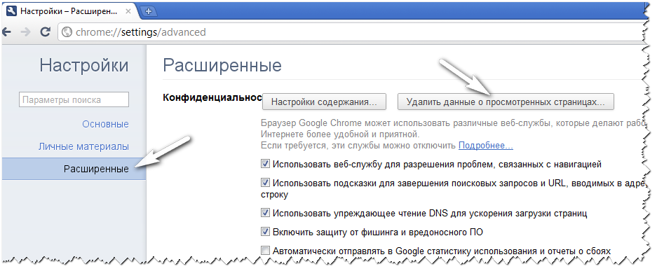 Удаляем в браузере историю