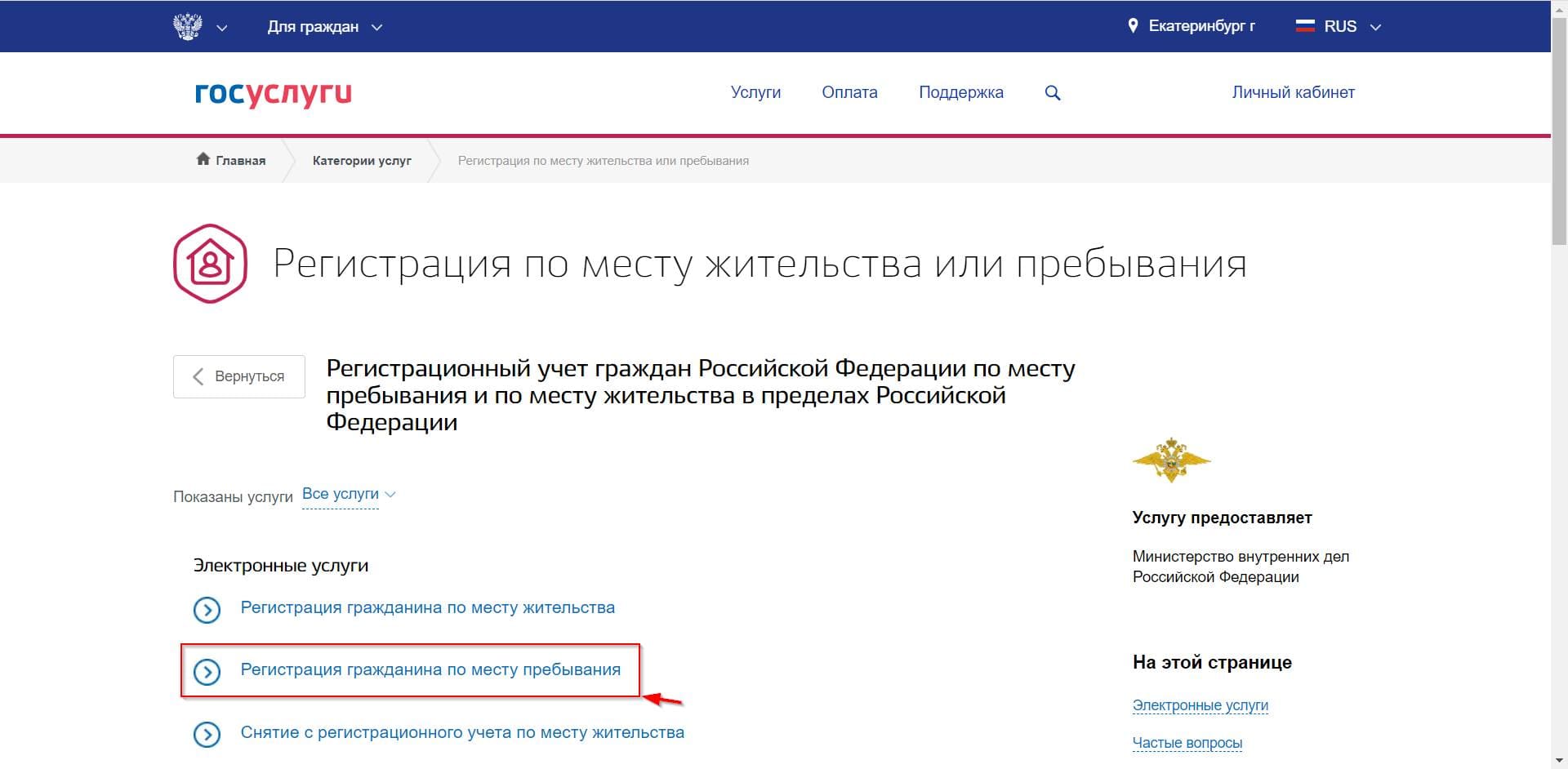 Порядок получения временной регистрации посредством портала Госуслуг выглядит так: