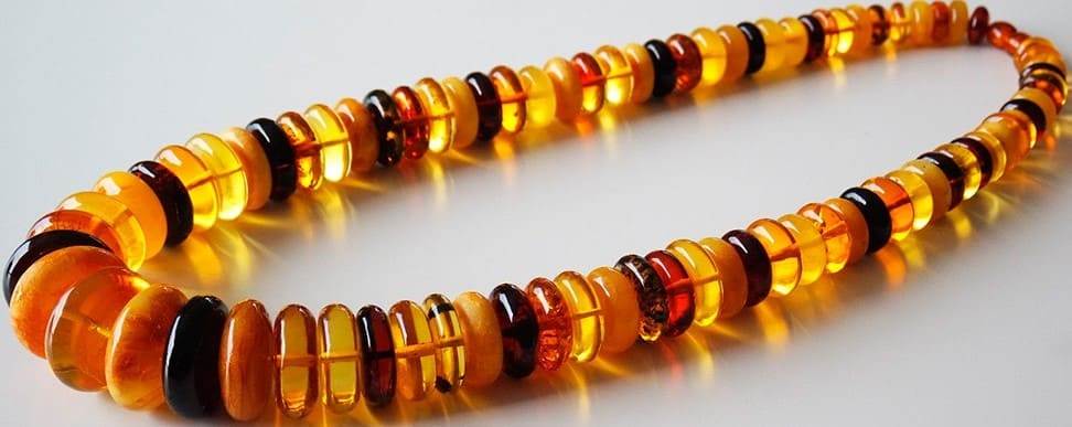 Янтарь, содержащий йод, полезно носить в бусах при профилактике или лечении заболеваний щитовидной железы. Самоцвет улучшает деятельность пищеварительной системы. Янтарная кислота имеет применение как противовоспалительное, стимулирующее, противострессовое и антитоксическое средство. Считается, что носимый на шее самоцвет, воздействуя на сонные артерии, будет очищать организм от шлаков.