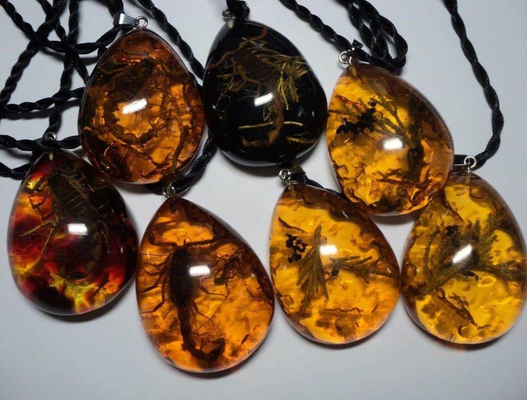 «инклюзивный янтарь» – камень, включающий в себя различных членистоногих, которые, прилипнув в доисторические времена по неосторожности к одной капле смолы, покрывались её новыми порциями и погибали. Подобные образцы благодаря наличию насекомых можно разглядеть в мельчайших подробностях, и ценятся они очень высоко – вплоть до того, что если в них обнаруживаются инклюзы размером более 10 мм., янтарь автоматически переходит в разряд драгоценных камней