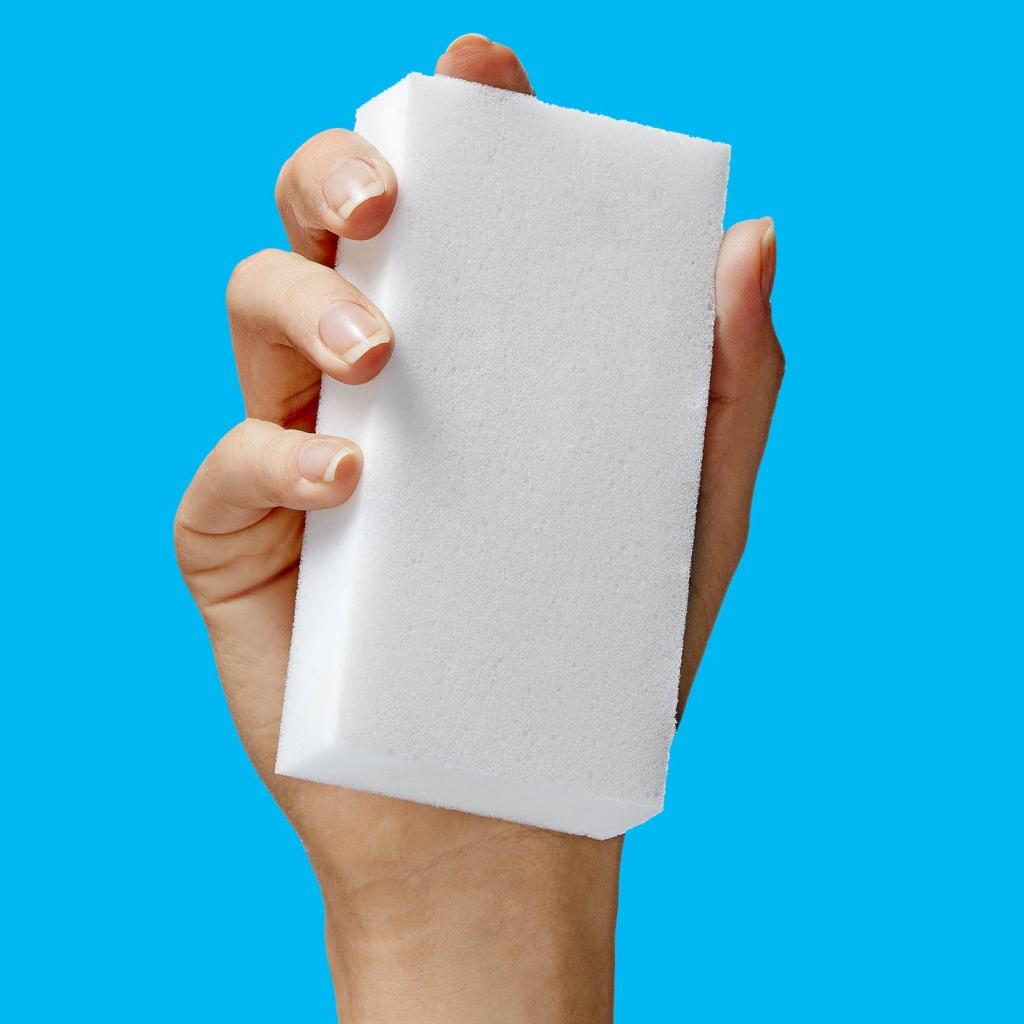 Эти магические ластики, которые появились в продаже сравнительно недавно, отлично справляются с очищением посуды. Они изготовлены из меламиновой пены, и потребуется лишь вода, чтобы они продемонстрировали свои чудесные свойства. Судя по отзывам, они справляются с устойчивыми и сложными пятнами (мелки и чернила, следы от потертостей). Несмотря на эластичность и мягкость на ощупь, такая пена действует подобно самой тонкой наждачной бумаге и может удалять жесткие и застарелые пятна от кофе и чая.