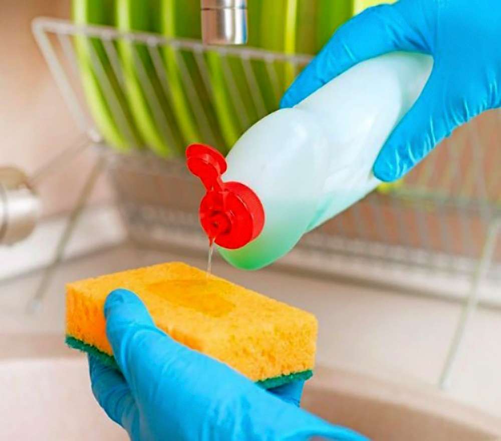 - Тщательно вымойте посуду кухонной губкой с привычным моющим средством.