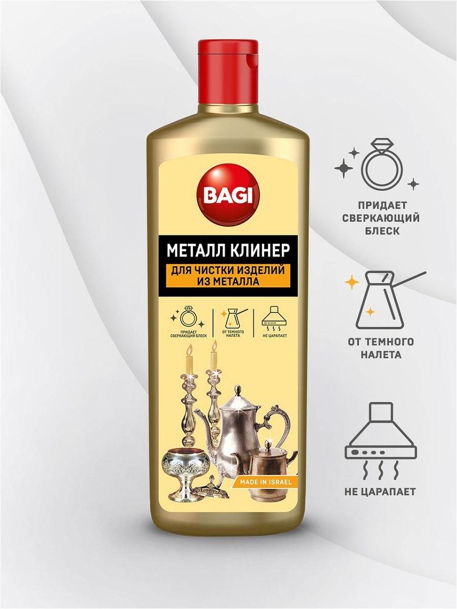 При этом «Bagi Металл Клинер» деликатно обращается с металлом. Его можно использовать даже с оцинкованной посудой, без опасения разрушения верхнего слоя.