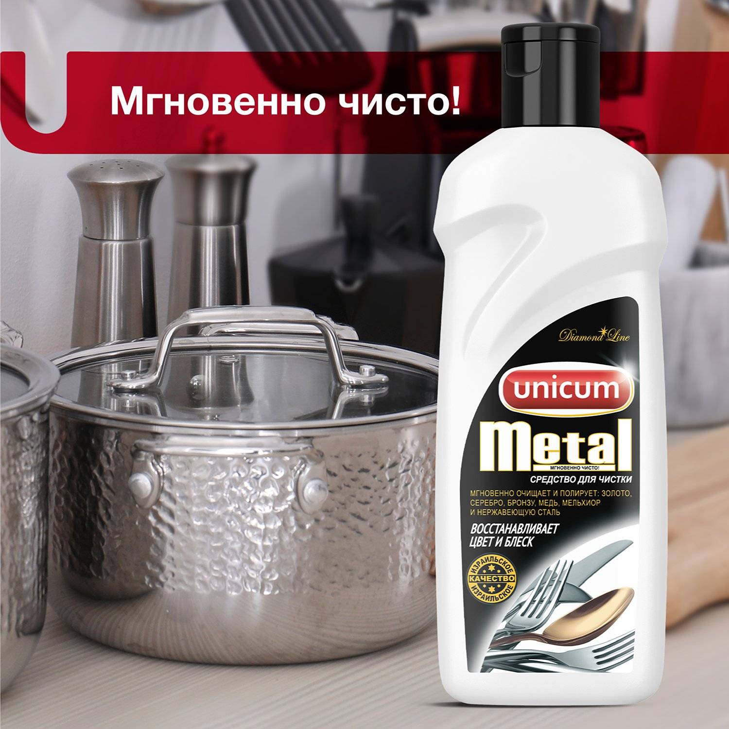 Ответ на вопрос: «Как почистить серебряные и мельхиоровые ложки?» — Unicum Metal. Это универсальное средство для ухода и полировки столовых приборов. Единственное, для чего он не подходит – тефлон и цинк, т.к. может повредить покрытие.