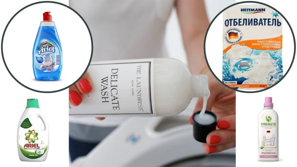 Для изделий из шелка наилучшим образом подходят жидкие моющие средства. В продаже имеются хорошие зарубежные и отечественные гели, например французский «Ариель Горный родник» и российский «Ласка Экстракт бамбука». Первый освежает краски, смывает серый налет, второй отлично справляется с разводами и потемнением. Их же можно применять и при чистке изделий вручную.