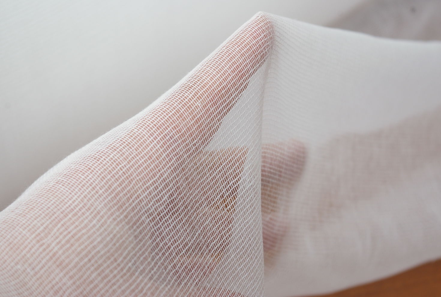 Белую тюль из шифона лучше стирать руками в тёплой воде, используя при этом жидкие средства. Занавески не нужно выжимать, выкручивать и агрессивно мять. Отбеливать можно теми же веществами, что и вуаль: пероксидом, нашатырём, солью.