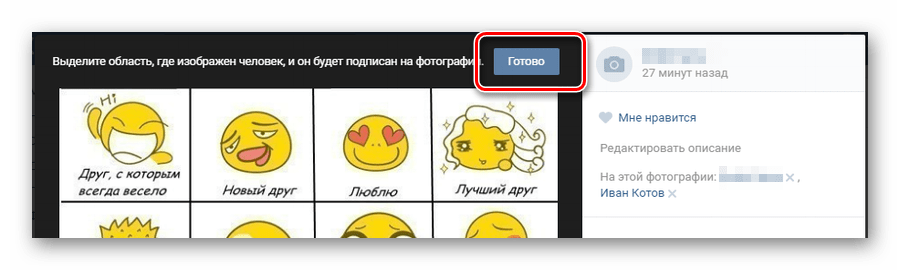 Закончив с выделением друзей на картинке, нажмите кнопку «Готово» в самом верху страницы.