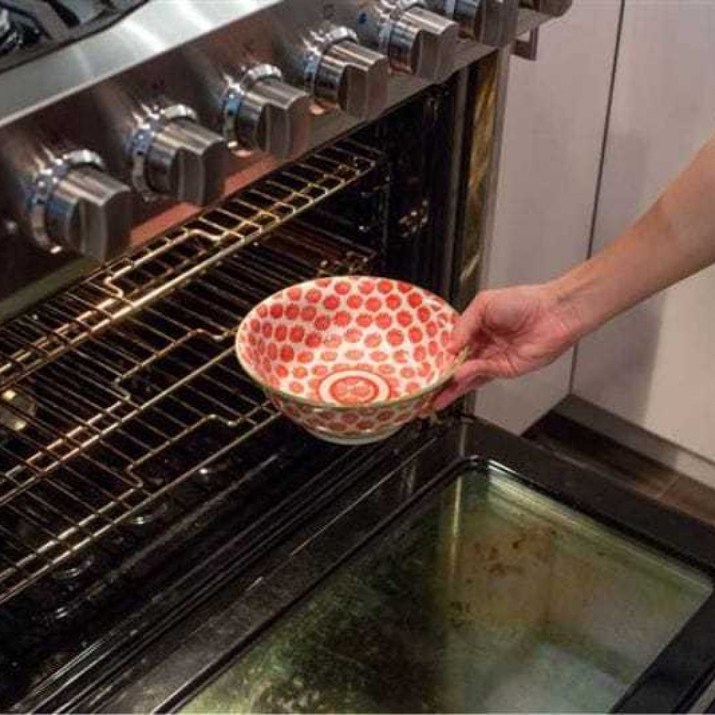 - Возьмите огнеупорную посуду, налейте в неё небольшое количество воды и поставьте в нагретую до 100 °C духовую печь.