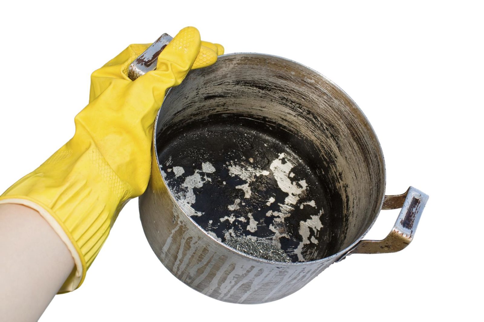 - Чем скорее вы начнете работы по очистке кастрюли, тем лучше будет эффект. Если посуда постоит какое-то время, то на ней неизбежно образуются пятна желтого цвета.