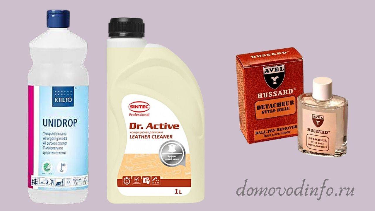 К профессиональным средствам относят разные виды пятновыводителей и чистящие составы, которые применяют в химчистках. В последнем случае использовать средства для домашней чистки не следует: они могут выделять токсичные вещества. При применении патентованных пятновыводящих средств выбирайте специально предназначенные для кожи и кожзама:
