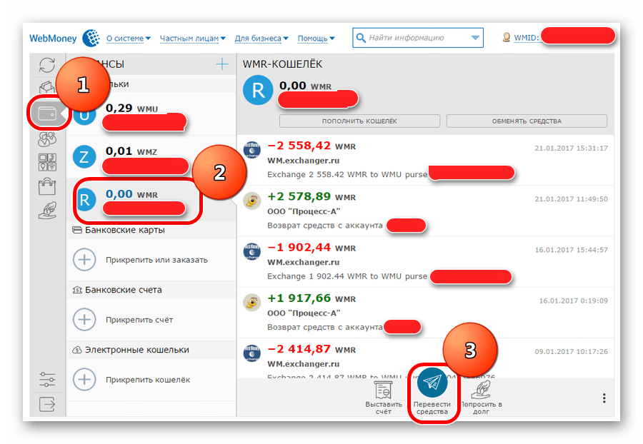Как перевести деньги с одного кошелька Вебмани на другой