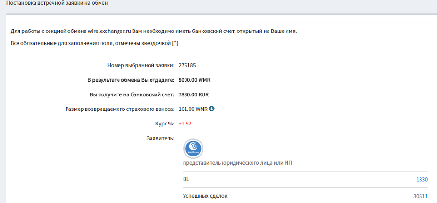 Хорошо то, что вам полностью вернут сумму и комиссию, если не найдется подходящих заявок. При частичной оплате система также вернет остаток WMR вместе с комиссией на этот остаток.