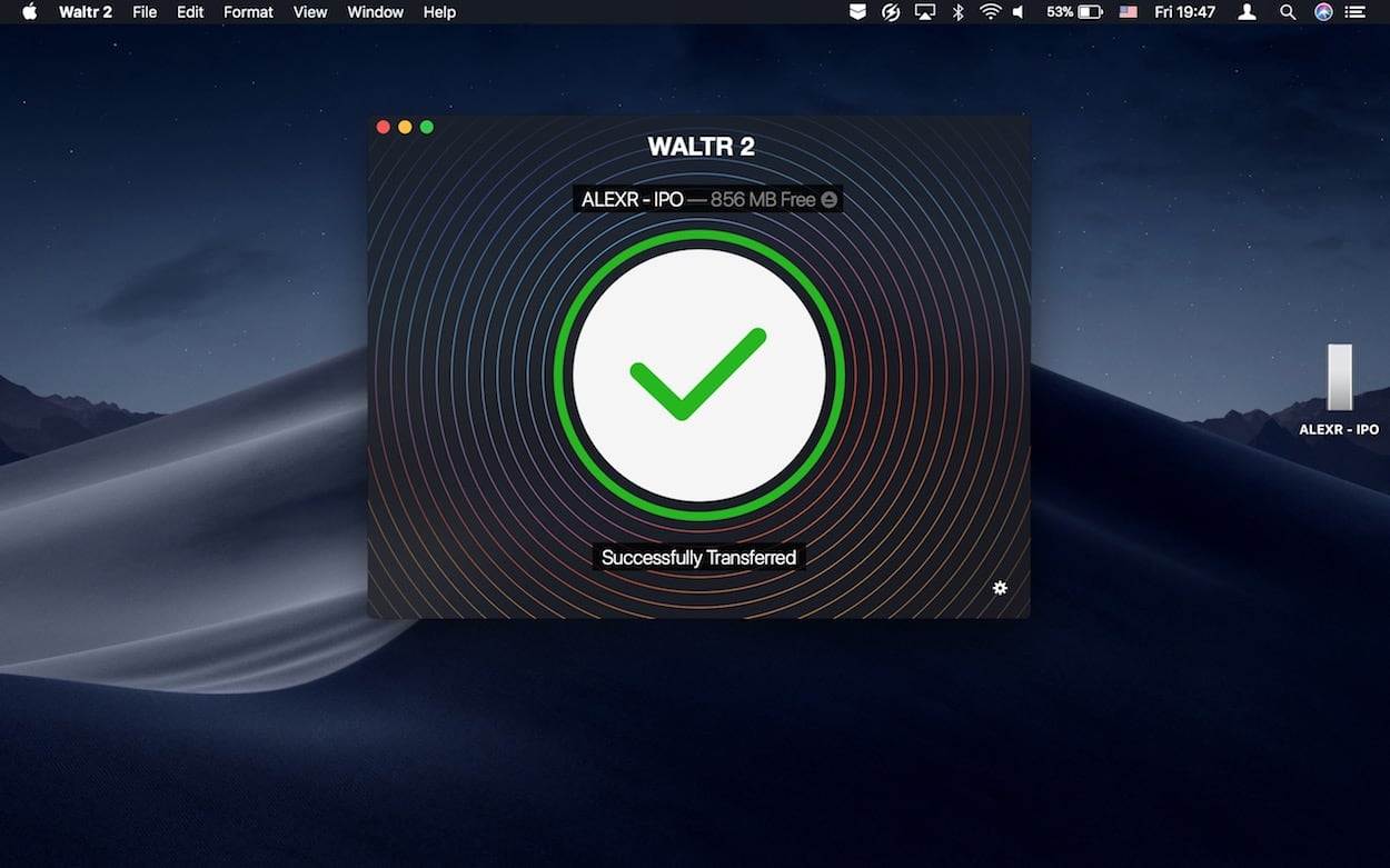 Эта программа — WALTR. Это маленькая чёрная коробочка на вашем рабочем столе, которая будет быстро скинуть музыку, а также фильмы и документы на ваше Apple-устройство за несколько секунд.