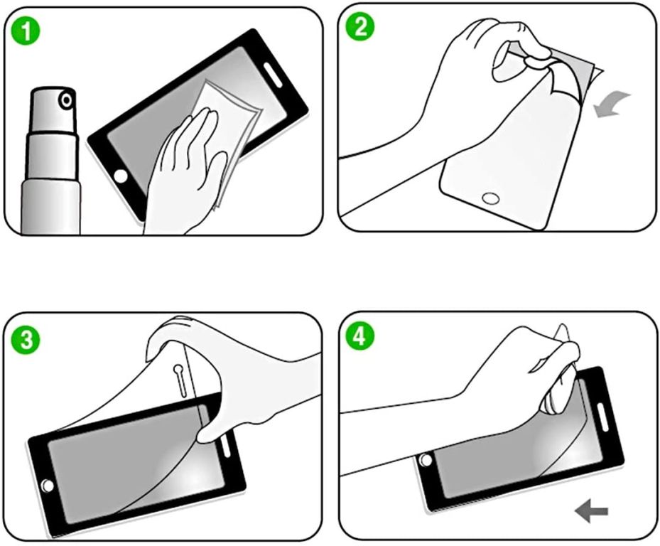 В комплекте часто идёт пара салфеток: сухая и влажная. Завершать чистку следует сухой. Можно воспользоваться дополнительными сухими средствами, чтобы удалить остатки пыли и частиц самих салфеток. Готовая поверхность для клейки должна быть идеально сухой и идеально чистой — это залог успешно наложенного стекла.