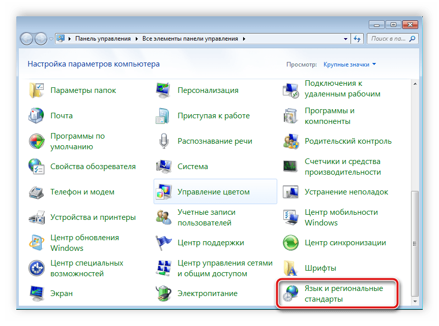 Найдите раздел «Язык и региональные настройки» и запустите его.