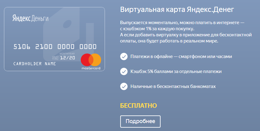 Кроме электронного кошелька, Яндекс предлагает выпустить собственную пластиковую карту. Она выходит на платформе MasterCard. Данная карта привязана к Яндекс.Кошельку и имеет один счет. При пополнении электронного кошелька автоматически пополняется счет пластиковой карты.