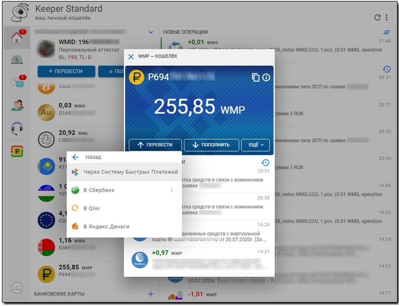 Средства можно вывести с помощью специальных сервисов Вебмани