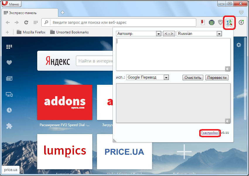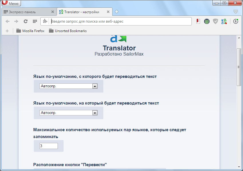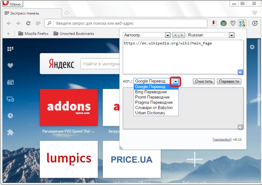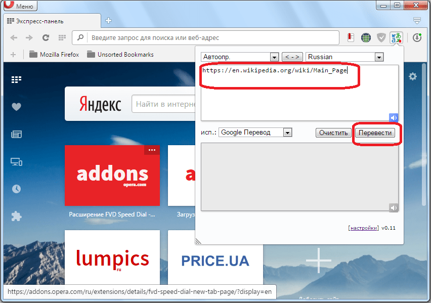 Раньше существовала также возможность организации автоматического перевода веб-страниц с помощью расширения Translate («Перевести»). Но на данный момент, к сожалению, оно не поддерживается разработчиком и теперь недоступно на официальном сайте дополнений Оперы.