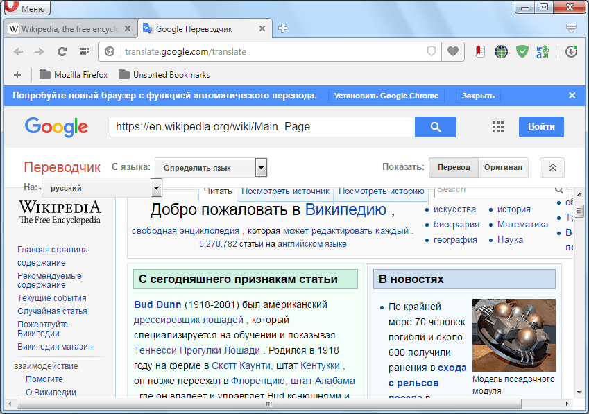 - Если открыть этот сайт в браузере Google Chrome, он поинтересуется у пользователя, нужно ли перевести его на русский язык. Выберите во сплывающем окне предложенный перевод;