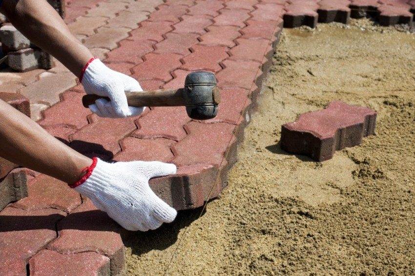 Утрамбовка тротуарной плитки с использованием мокрого песка