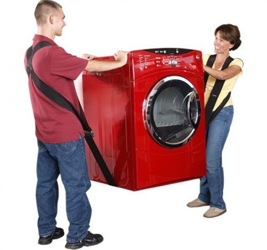 Как же перевезти стиральную машину, чтобы она не повредилась в транспорте? Правильно упакованный агрегат полностью готов к ручной переноске и погрузке в автомобиль. Лучший вариант транспортного средства – грузовик с просторным кузовом, но можно перевезти изделие и в легковом автомобиле. При переноске старайтесь удерживать бытовой прибор в вертикальном положении, даже если вы спускаете его с верхних этажей. Одному справиться с такой задачей невозможно, переносить стиральную машину должны как минимум два человека. Профессиональные грузчики используют для переноски специальные подъемные ремни, с которыми вес машинки практически не ощущается, а риск повредить или уронить предмет сводится к минимуму.