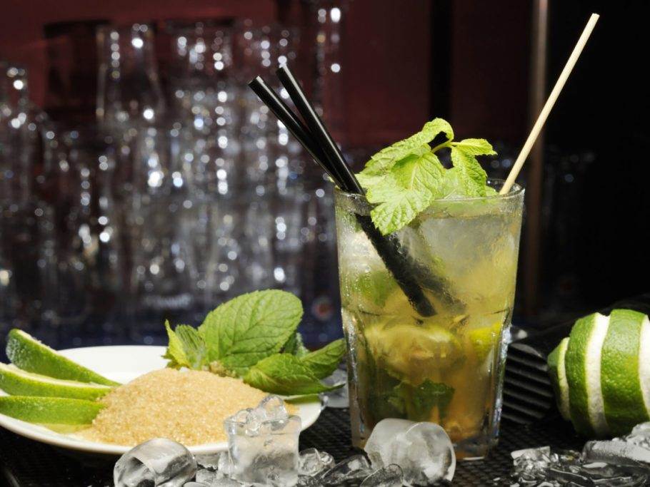 Белый ром, лед, листочки мяты, тростниковый сахар и долька лайма. Сухие ингредиенты нужно смешать в специальной ступке. Это необходимо для того, чтобы мята и лайм отдали наибольшее количество эфирных масел. Все компоненты засыпают в высокий стакан, добавляют кубики льда и разбавляют белым ромом.