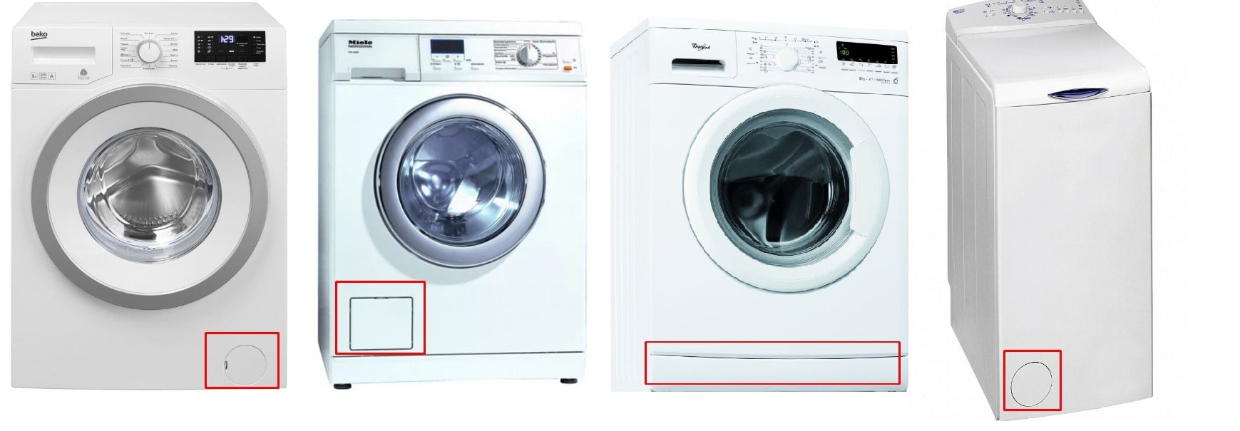 - За цокольной панелью: Indesit, Ariston, Hotpoint-Ariston, фронтальные Whirlpool, Beko.
