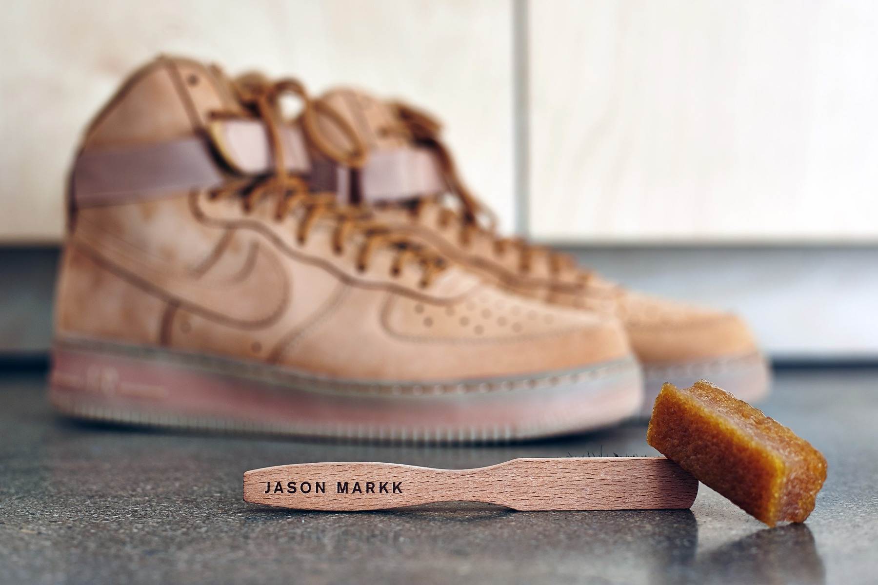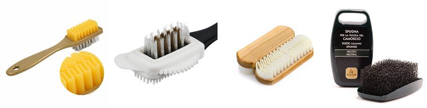 Замшевая обувь требует специального ухода. Для замшевого материала подходит специальная щетка, которая выглядит как грубая пористая губка. Помимо нее рекомендуется приобрести специальный резиновый ластик, для удаления жирных пятен и разводов. Ластики часто имеют специальные зазубрины для удобства обработки. Креповая щетка поднимает ворсинки.