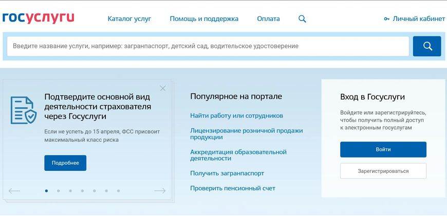 Подача заявление через интернет осуществляется через сайт Госуслуг.