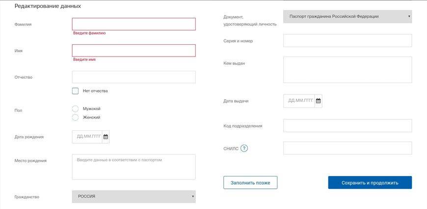 Чтобы создать личный кабинет в пространстве ГосУслуг, необходимо заполнить такие поля:
