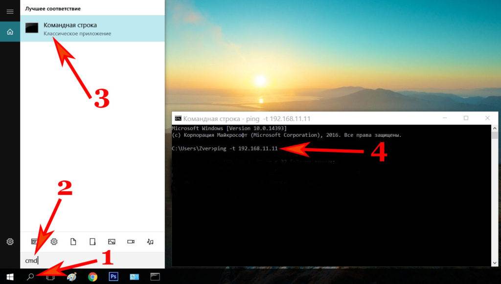 - Запустить командную строку, ввести «ping IP другого ПК»;