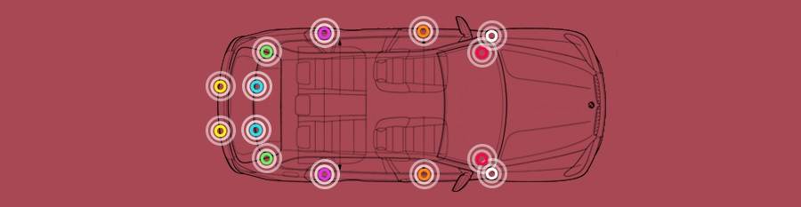 Динамики не ставятся в боковых фиксаторах задней полки и в кик-панелях. Оптимальное место расположения акустики – это передние дверцы машины, при этом располагаться динамики должны на уровне головы и ушей водителя. Таким образом, звук охватывает большую площадь распространения и хорошо слышен на задних сиденьях.