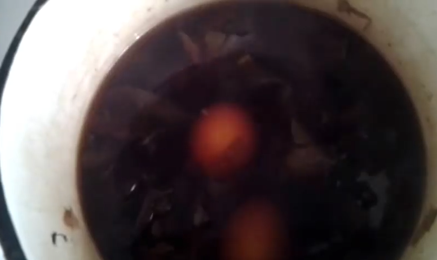 Необходимо перемолоть 200 г кофе. Отварить яички в кофе и 250 мл воды до получения нужного оттенка. Дать охладиться и придать блеск и сияние.