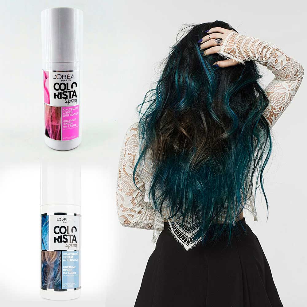 Флакон держите на расстоянии 10-15 см от прядей. Не стоит наносить слишком много средства, иначе волосы склеятся. После окрашивания спреем цвет будет держаться до первого смывания шампунем.
