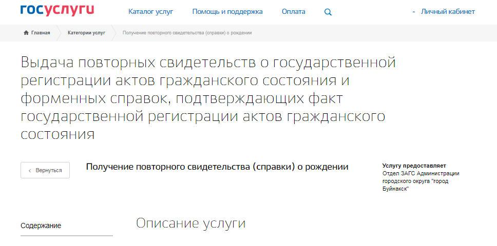 Получение повторного свидетельств (справки) о рождении на сайте Госуслуг