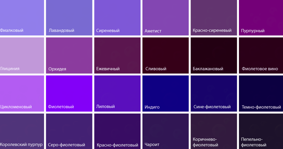 Оттенки фиолетового цвета