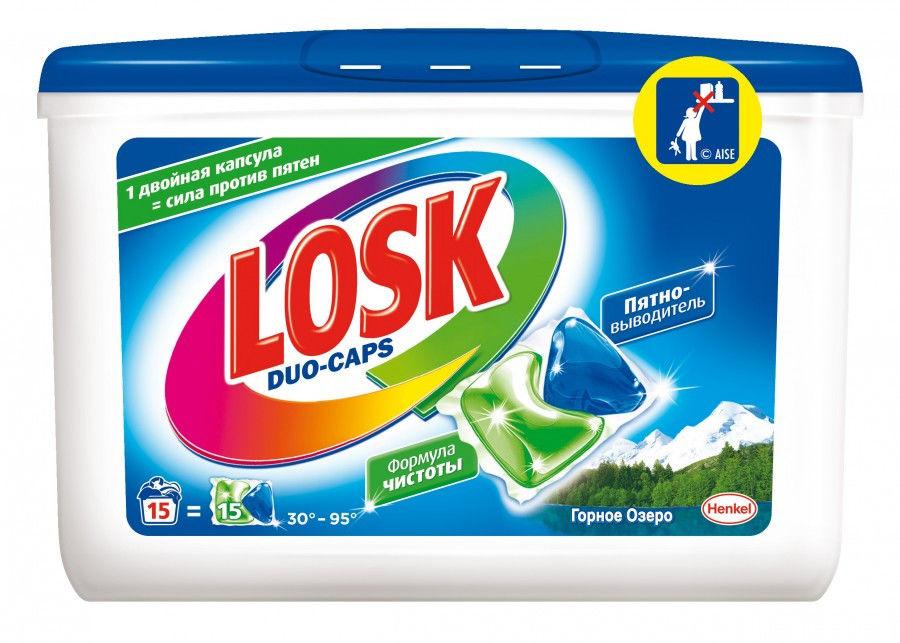 Лоск, так же как и Persil, выпускает свой товар в виде двойных капсул. Они предназначены для стирки сильно загрязненных вещей, при этом придают приятный аромат. Формула содержит в себе 6 активных компонентов, каждый из которых предназначен для определенного вида загрязнения. Цена 14 стирок составит в среднем 500 руб. Произведено в Венгрии. Упаковка отличается маленькими размерами, благодаря чему не занимает много места.