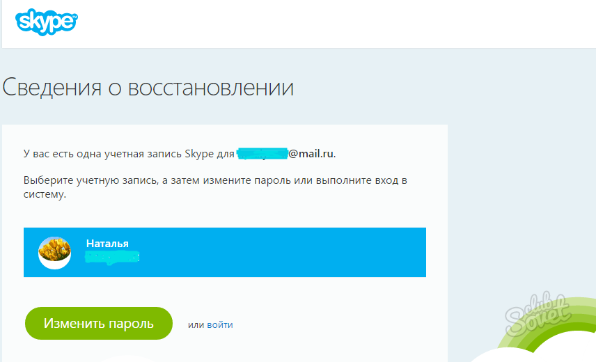 Открываем приложение Skype на компьютере.</li>В появившемся окошке вбиваем свой ник в «Скайпе». Нажимаем на «Далее».</li>Под панелью, где предлагают ввести пароль, жмем на «Забыли пароль?».</li>Вам будет предложено 3 варианта ответа, выбираем «Я не помню свой пароль».</li>Вводите учетную запись Microsoft и разгадываете капчу.</li>В меню, где предлагается получить код безопасности, кликаете на «Письмо: ваш почтовый адрес@mail.ru» (также возможно восстановление по номеру телефона).</li>На электронный адрес придет письмо с ссылкой, перейдя по которой вы сможете сделать новый пароль. Если к почте привязано несколько аккаунтов, то выберете логин, к которому хотите восстановить пароль.</li>Обязательно проверяйте введенные данные.</li>После завершения процесса зайдите в Skype и убедитесь в восстановлении пароля.</li>Наслаждайтесь разговорами!</li>