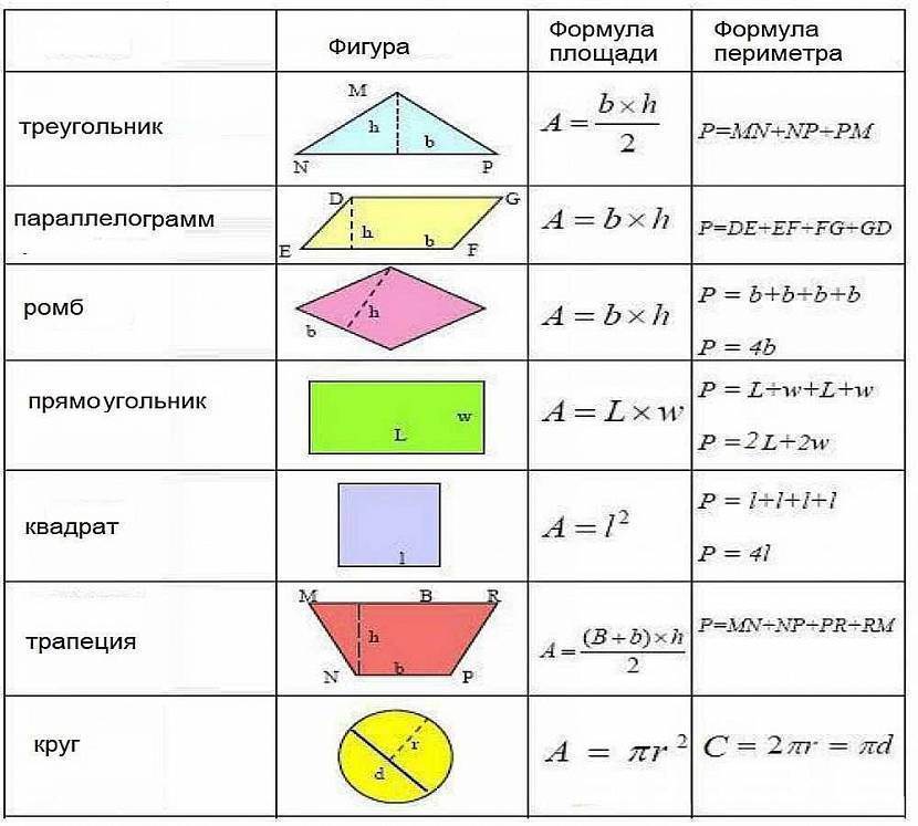 Вычисление площади простейших геометрических фигур основано на базовых формулах из геометрииИсточник stroychik.ru