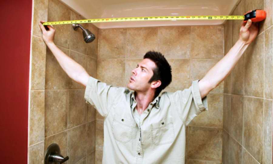 Чтобы определиться с объемами материалов для облицовки ванной, сначала нужно посчитать площадь ванной комнаты для приобретения плитки. Понадобится рулетка, с помощью которых нужно измерить стены по высоте и длине.