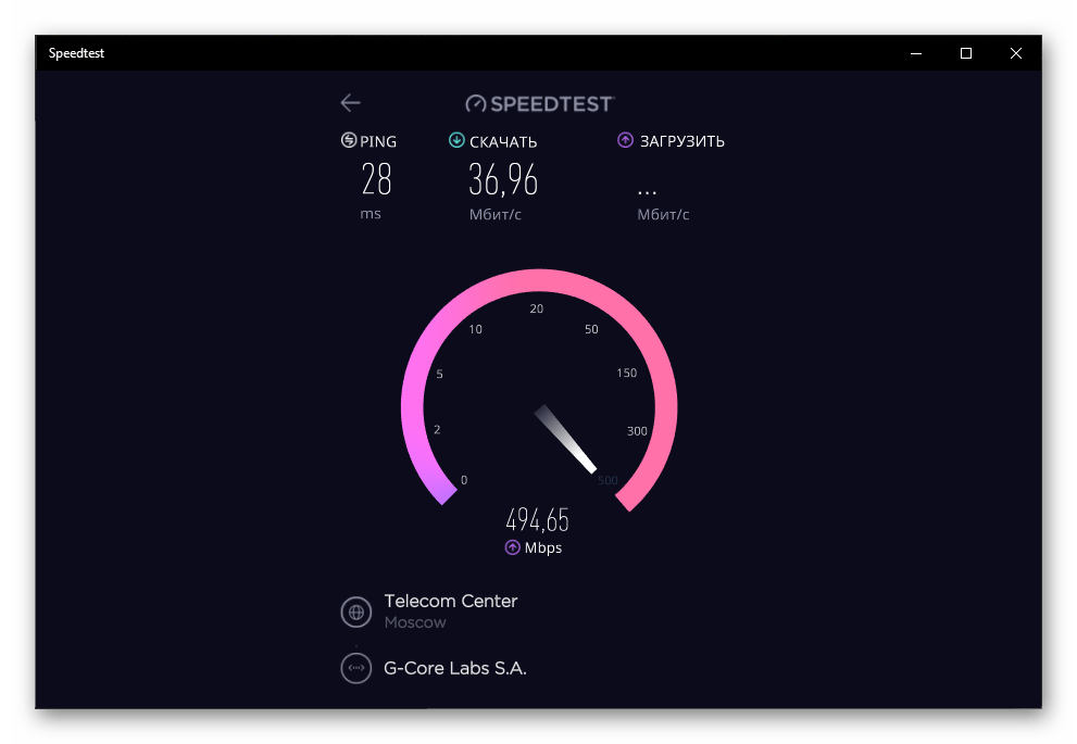 После проверки смотрите показания загрузки, выгрузки и задержки (ping)