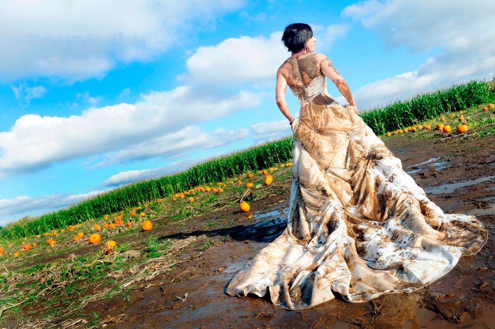 В последнее время появилось новая интересная мода — делать свадебные фотографии в грязи. Проводится такая фотосессия конечно уже после свадебного дня, когда невеста морально готова испачкать свое платье полностью. Результат получается шокирующий и вместе с тем очень завораживающий.