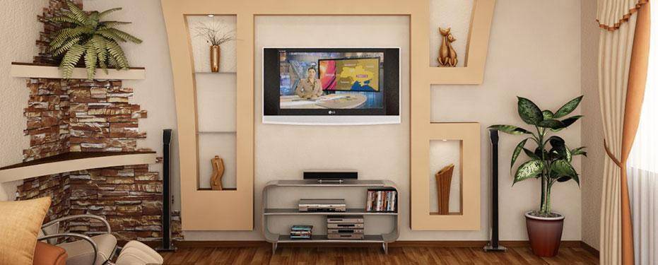 Однако здесь и минус — если придется менять тв, приобретать другой по размерам, или же если пользователю захочется перевесить устройство в другое место — самодельную нишу придется заделывать. Или же при покупке нового тв, придется подстраиваться под размеры ниши.