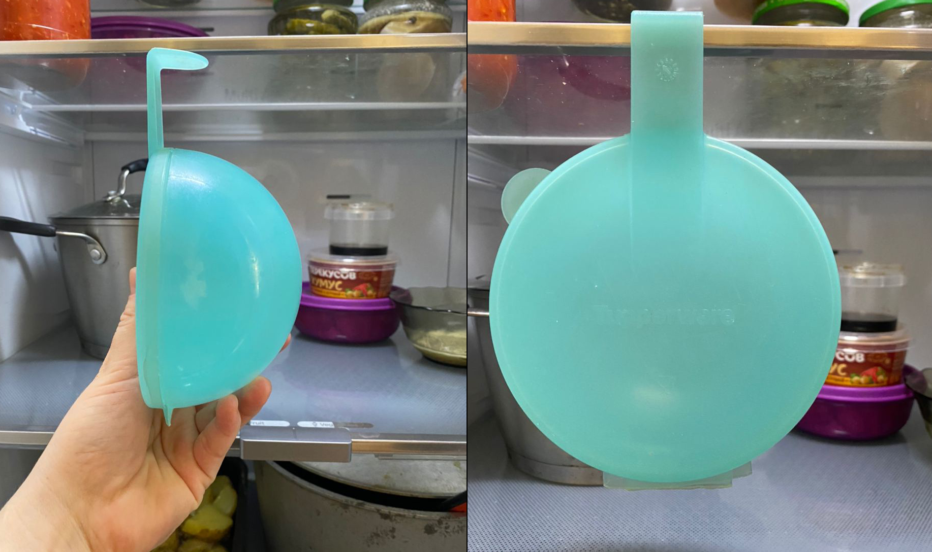 Подвесной контейнер крепится к полке холодильника, не дает забыть об остатках лука и предотвращает распространение лукового аромата