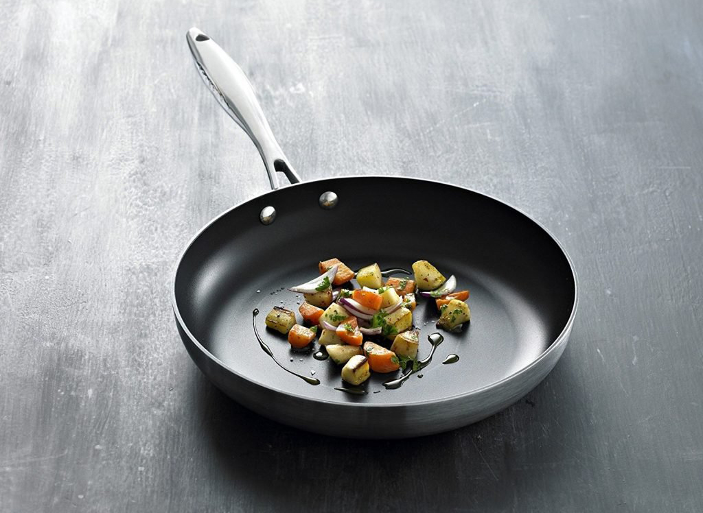 Самый популярный вид покрытия для сковородок – он идеален в плане равномерной прожарки ингредиентов, и при этом пригорание снижается до минимума. Единственный недостаток – это необходимость приобретения дополнительных инструментов: деревянной или силиконовой лопатки, чтобы не поцарапать нежное покрытие. Не стоит забывать, что на такой сковороде можно готовить вообще без масла.
