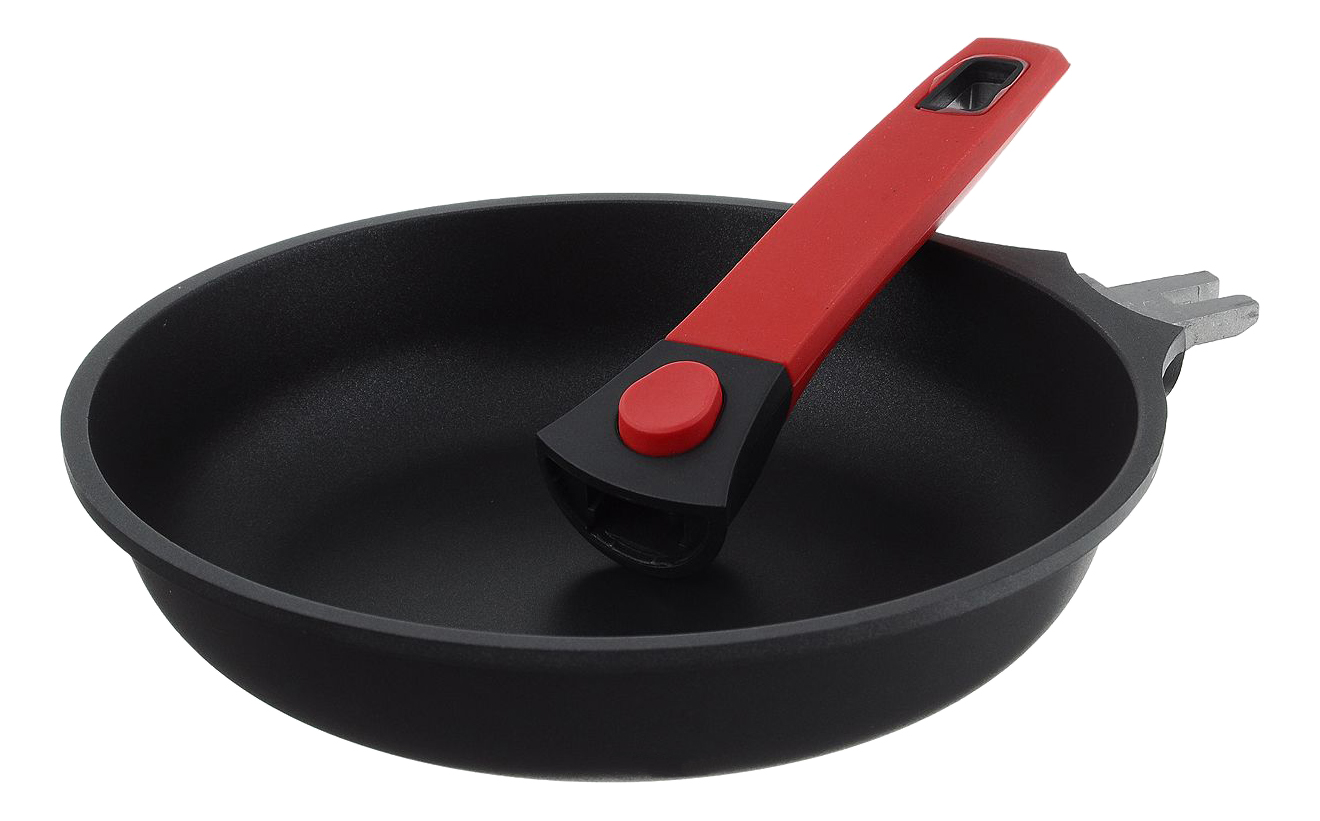 Керамическое покрытие – это достаточно прочный вариант для сковороды, к тому же часто изделие выполнено в цвете, что станет дополнительным украшением кухни. Керамика хорошо моется, продукты практически не пригорают. Вариант со съемными ручками можно использовать в духовом шкафу. Минус один – нельзя использовать для индукционных плит.